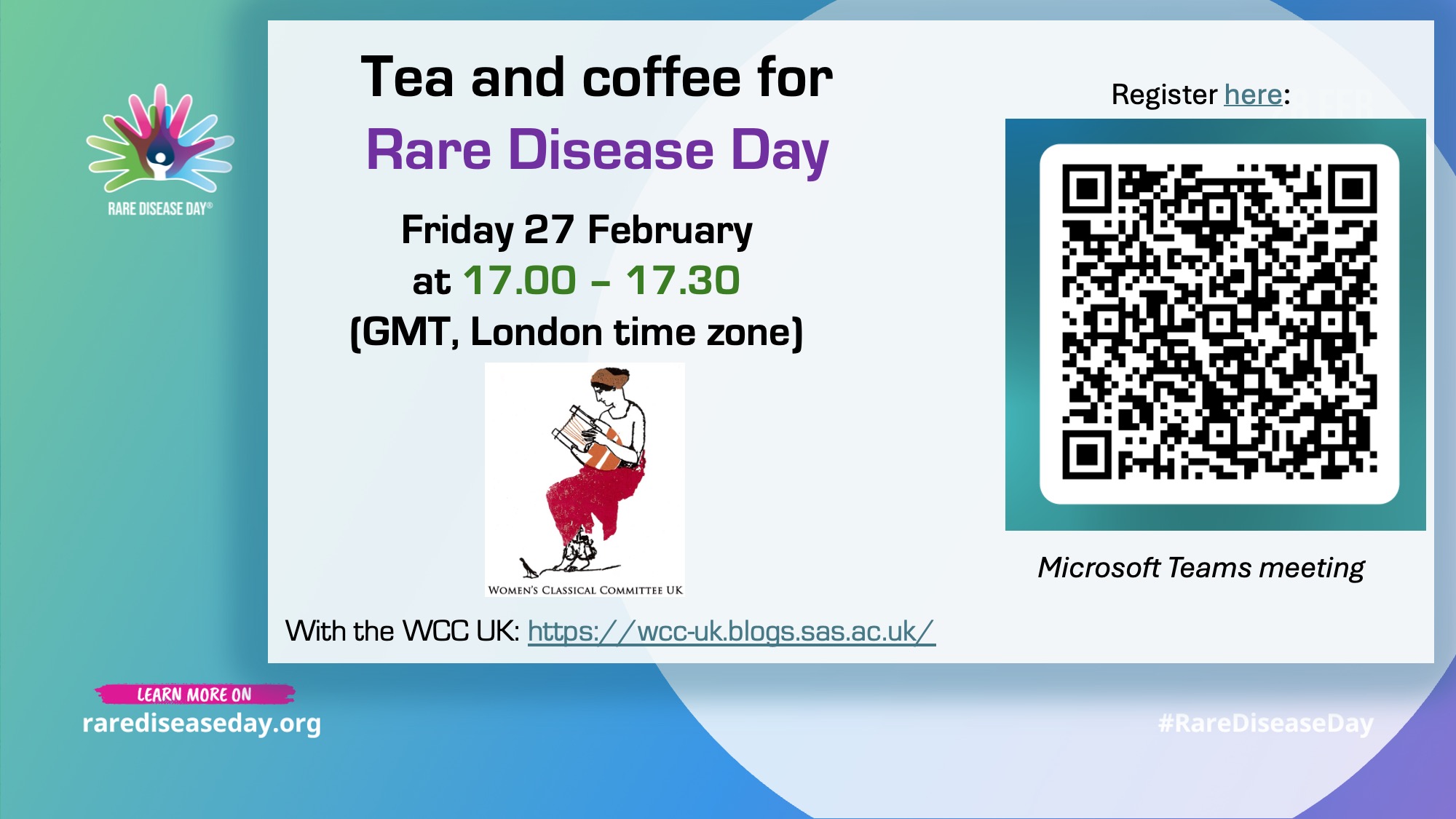 We are pleased to welcome you to an online tea and coffee break for Rare Disease Day on Friday 27th February at 17.00-17.30 GMT. A wonderful online opportunity to catch up and chat about living with long-term conditions and disability in academia.